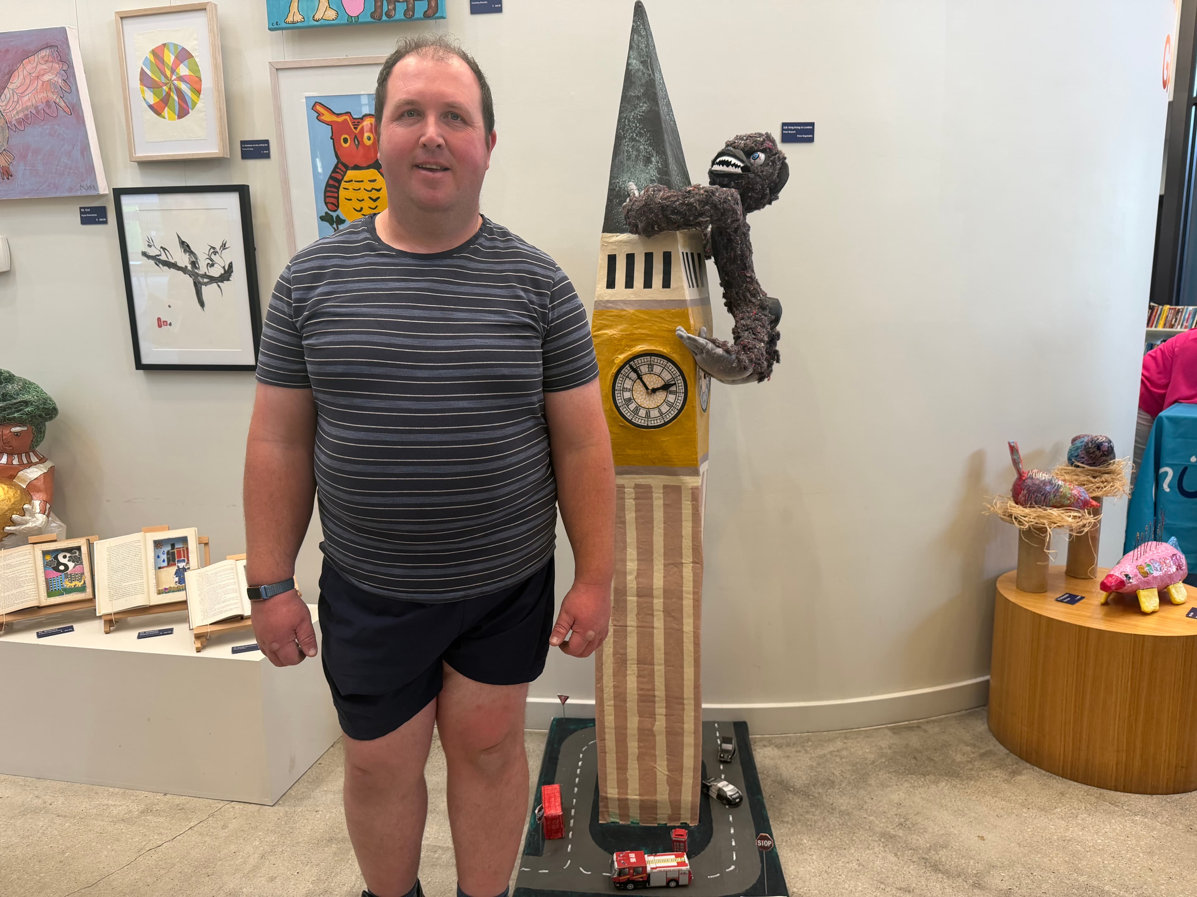 “Sarah (staff member) had the idea to do a King Kong sculpture, and I came up with the idea for him to be climbing Big Ben,” Peter said. “It took around 12 months of Tuesday art programs to complete.”